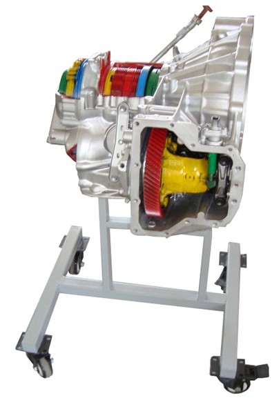 自動變速器實驗臺采用解剖形式,各運轉部位以及自動變速器內部運轉情況均清晰可見。帶剎車的萬向輪便于實驗臺的移動和固定,臺架采用高檔噴塑。