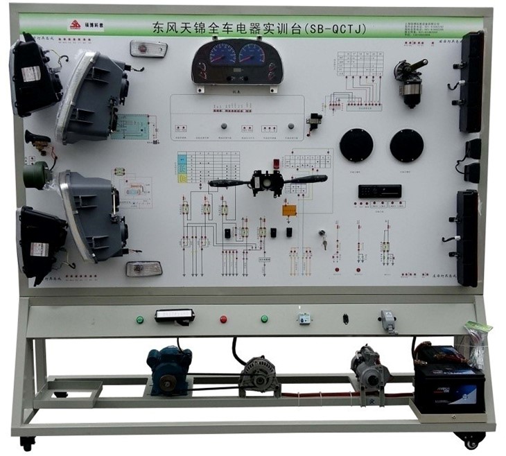 該設備采用全新 東風EQ1120GA2 柴油機整車電器實物為基礎,充分展示汽車儀表系統、燈光系統、雨刮系統、喇叭系統、發動機電器系統、起動系統和充電系統等汽車電器各系統的組成結構和工作過程。