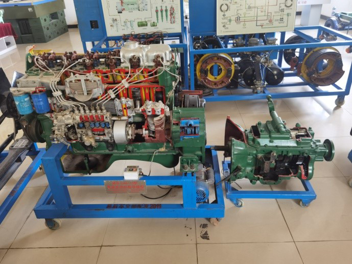 東風天錦發動機解剖實訓設備采用翻新東風天錦歐3電控柴油發動機總成進行剖面處理,各部件齊全,剖面位置合理,能全面展示發動機與變速器內外部結構和部件的運動情況,適用于發動機與變速器原理和機械機構的教學。