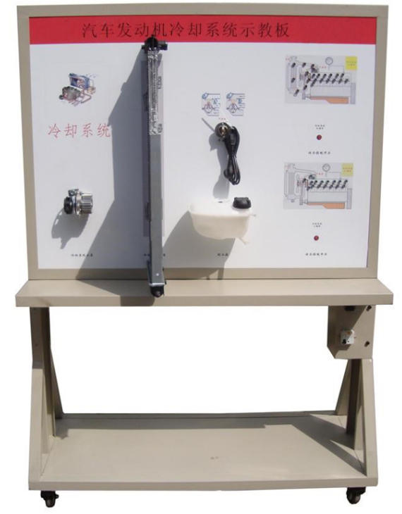 2.示教板面板采用耐創擊、耐污染、防火、防潮的高級鋁塑板,表面經特殊工藝噴涂底漆處理;面板打印有永不褪色的彩色電路圖與工作原理示意圖;學員可直觀對照發動機冷卻系統結構原理圖和實物,認識和分析發動機冷卻系統的工作原理。