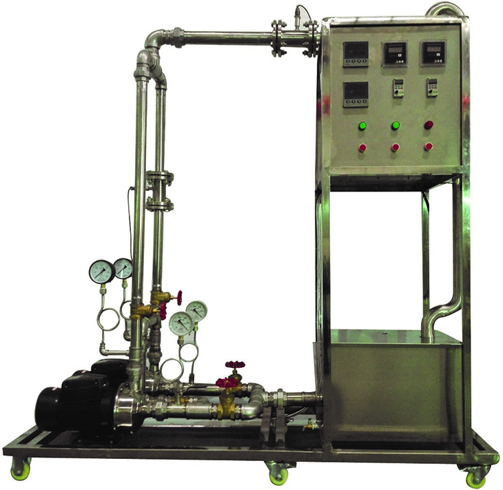 單相矢量變頻器,規(guī)格:(0-50)Hz。 指針式壓力表:表盤直徑Φ100mm 測量范圍0-0.6MPa,精度1.5級。 指針式真空表:表盤直徑Φ100mm 測量范圍-0.1-0MPa,精度1.5級。 功率變送器、智能功率數(shù)字顯示儀。 光電傳感器:數(shù)顯,測量范圍0~2999rpm,精度1rpm,轉(zhuǎn)速檢測機(jī)構(gòu)。 宇電AI702M溫度數(shù)字顯示儀。 宇電AI702M流量數(shù)字顯示儀。 DN40渦輪流量計(jì):1~20m3/h,4-20mA遠(yuǎn)傳輸出,流量檢測機(jī)構(gòu)。 不銹鋼離心泵:功率750W,最大流量7.2m3/h;2臺。 水箱:304不銹鋼材質(zhì),容積100L,帶貯水排空底閥,管路循環(huán)回水與泵吸入口間隔板設(shè)計(jì)。 管路:304衛(wèi)生級不銹鋼材質(zhì),采用不銹鋼快裝活接與管路連接,總出口閘閥;管道法蘭連接渦輪流量計(jì)。 電器:接觸器、開關(guān)、漏電保護(hù)空氣開關(guān)。 304不銹鋼儀表柜:測控、電器設(shè)備在實(shí)驗(yàn)架上。 304不銹鋼材質(zhì)框架1800*600*1900mm(長×寬×高),帶腳輪及禁錮腳。 |