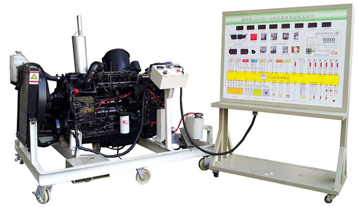 柴油發動機總成、組合儀表、發動機控制單元、散熱系統(水箱、風扇、上下水管)、排氣系統、進氣系統(進氣軟管、空氣濾清器總成)、原車電路原理圖板及檢測端子面板、蓄電池、電源總開關、燃油箱、油水分離器、油門踏板裝置、可移動機臺架、臺架高溫及轉動等部位加裝防護裝置等。