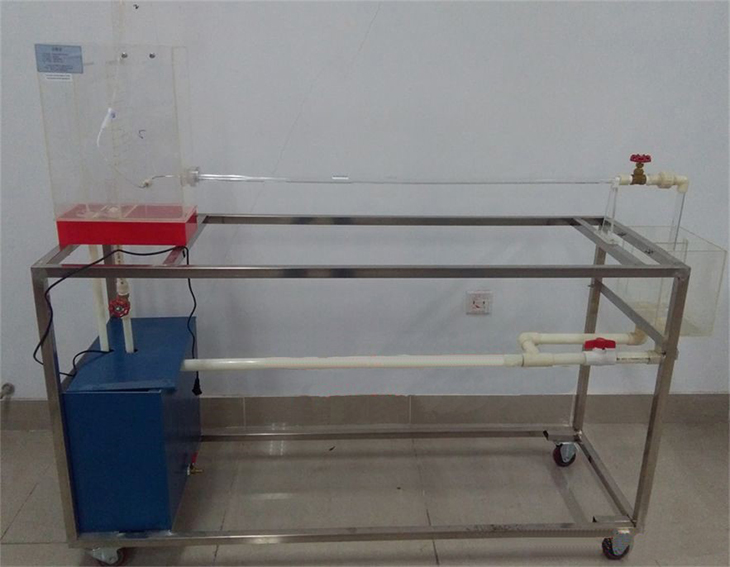 10、配置:移動式不銹鋼實驗臺、有機(jī)玻璃整流穩(wěn)壓水箱、雷諾管、顏料盒、顏料針管、計量水箱、PVC板供水箱、防腐潛水泵、循環(huán)管閥、控制箱。